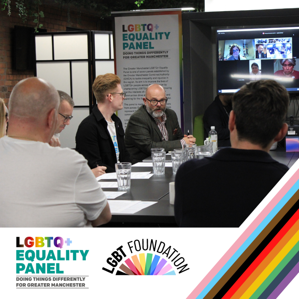 The LGBTQ+ Equality Panel is facilitated by LGBT Foundation, and brings together LGBTQ+ volunteers from across Greater Manchester, to speak to their lived experience and contribute diverse perspectives to GMCA’s work.