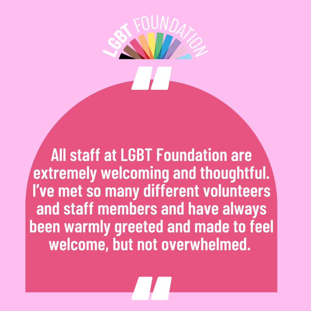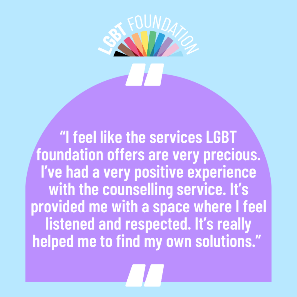 Our communities are resilient, strong and amazingly diverse. Despite this, we know sometimes they will need a helping hand on their journey. Here at LGBT Foundation, we pride ourselves on offering safe, accessible, and specialist services to meet the needs of these communities.