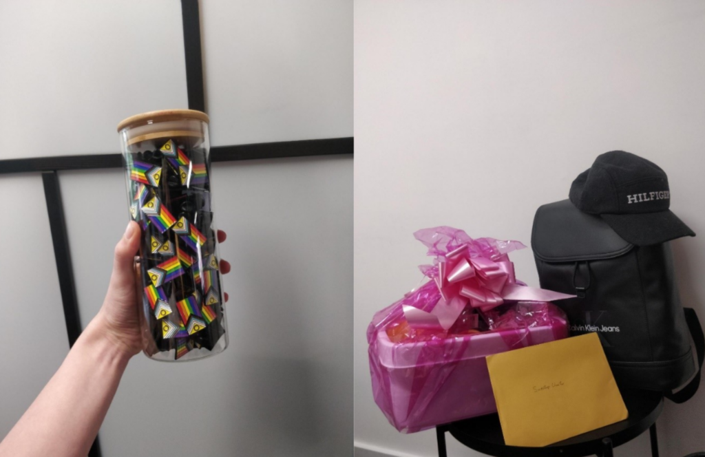 Over Pride season you can catch us at events across Greater Manchester with our jar full of progress flags (see below) and bundle of goodies that you can win!